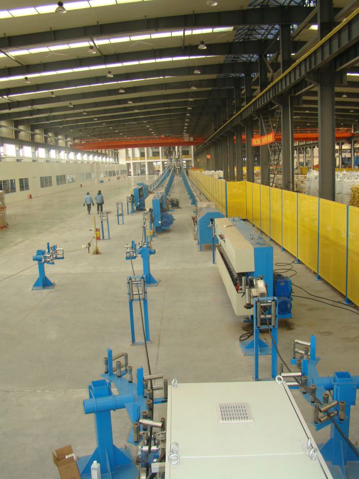 本生產線為氮氣交聯、水冷卻方式干法交聯生產線,適用于生產6-35kV,絕緣厚度在12mm以下,電壓等級交聯聚乙烯絕緣電力電纜的纜芯。